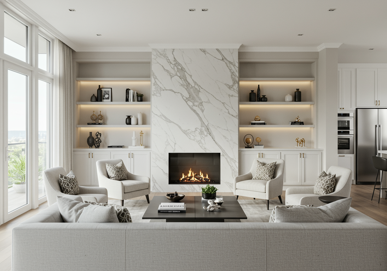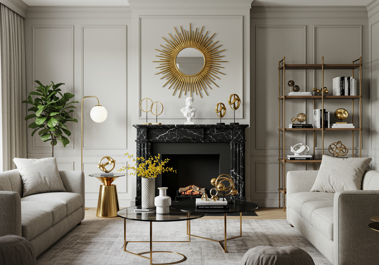 Your living space may already have a built-in mantle or large picture windows that serve as a natural focal point. But you can also make one out of furniture, artwork, or architectural elements.